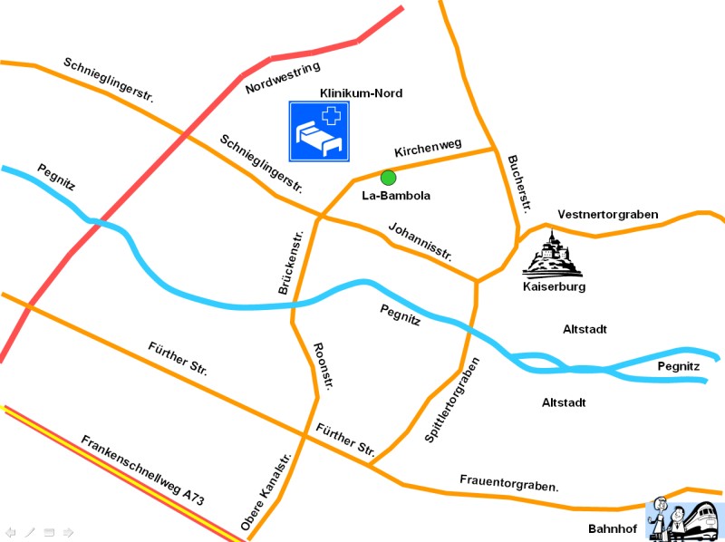 La Bambola liegt im Viertel St. Johannis am Nordwestrand der Altstadt, 90419 Nürnberg Kirchenweg 35,